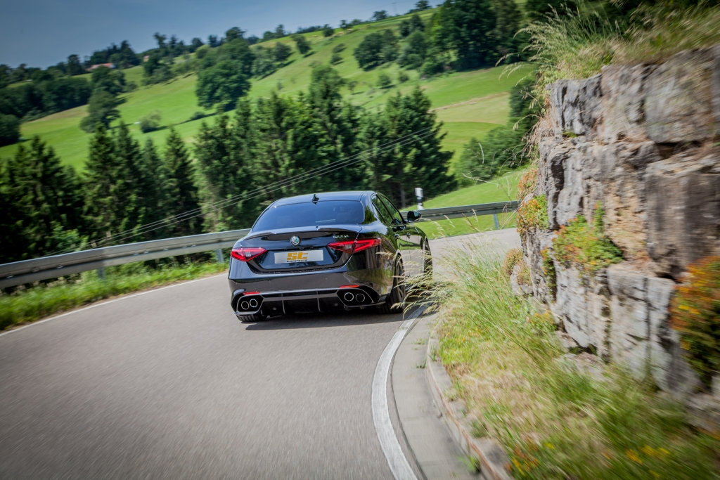 The Italian car manufacturer Alfa Romeo bethinks back to his sporty roots. The new ST suspensions springs are now available for the performance sedan with its 510 hp 2,9-liter Biturbo-V6 and lowers the Italian sports car 20 mm.
