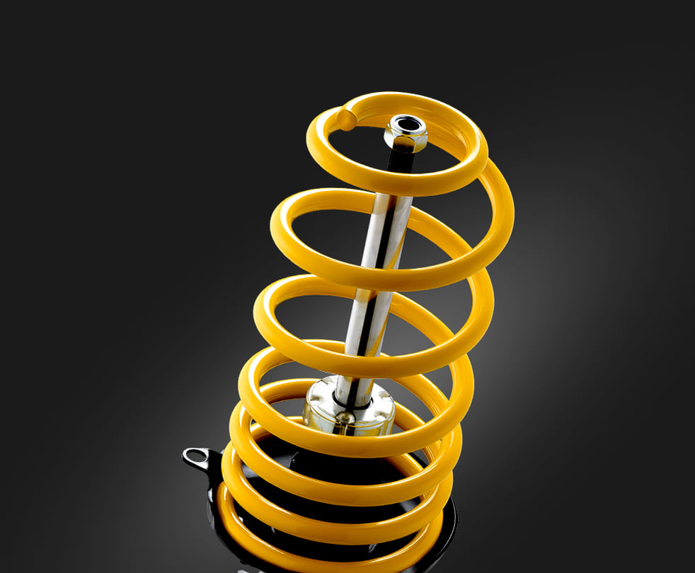 All ST sport suspensions only use high-quality components like those used in the OEM suspension. Our springs are made of a high strength steel alloy, they are multi-coated, and have a final epoxy coating. The temperature resistant twin-tube dampers have vehicle specific valve setups. Their low-friction and pressure resistant housing features a high quality monoblock rod guide and a robust sealing package.